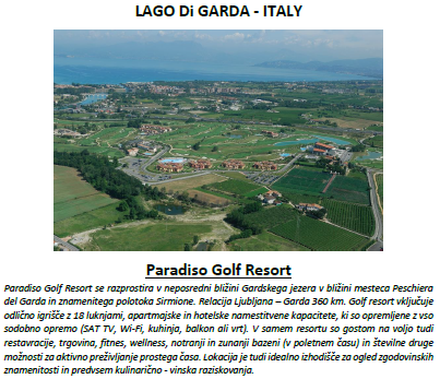 Golf paket Garda – Paradiso Golf resort, zima 2019 – 2020